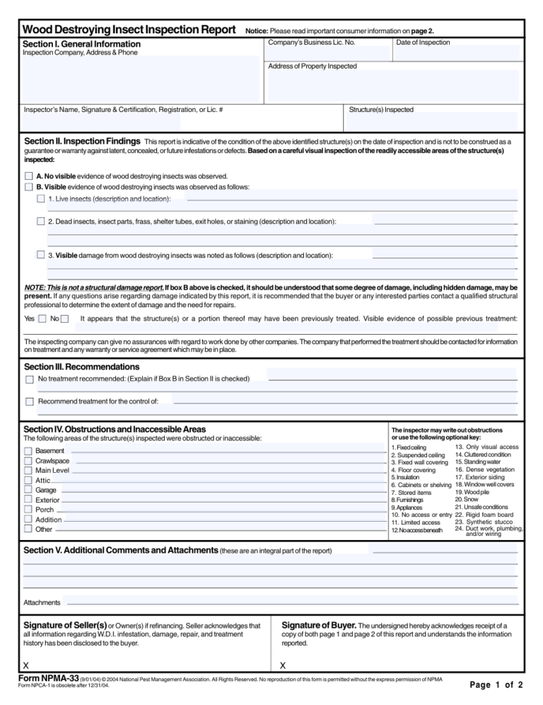 A registered pest control expert will conduct a thorough examination and document either the presence or absence of wood-destroying insects in your property. The report will also identify potential vulnerabilities that could lead to future infestations.